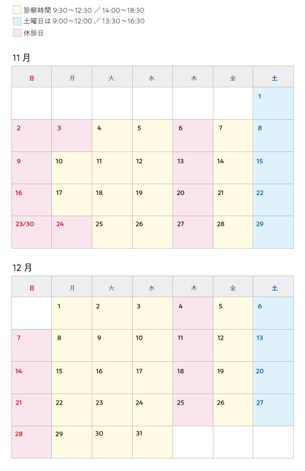 ▲土曜日は9:00〜12:00 / 13:30〜16:30 ※休診日:木曜日、日曜日、祝祭日